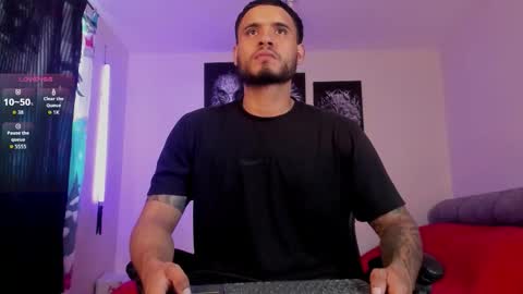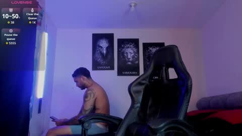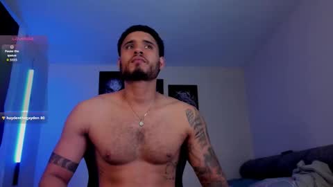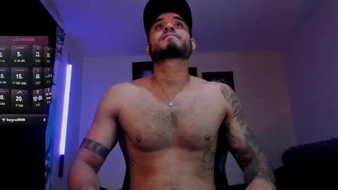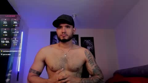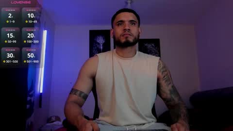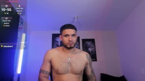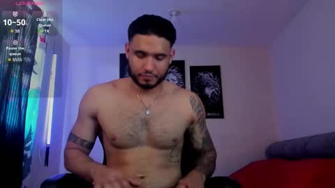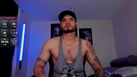 Room topic: "welcome to my room! Lovense: Interactive Toy that vibrates with your Tips make me cum - Goal is : show big cum + oil on the body #hairy #latino #muscle #lovense #master